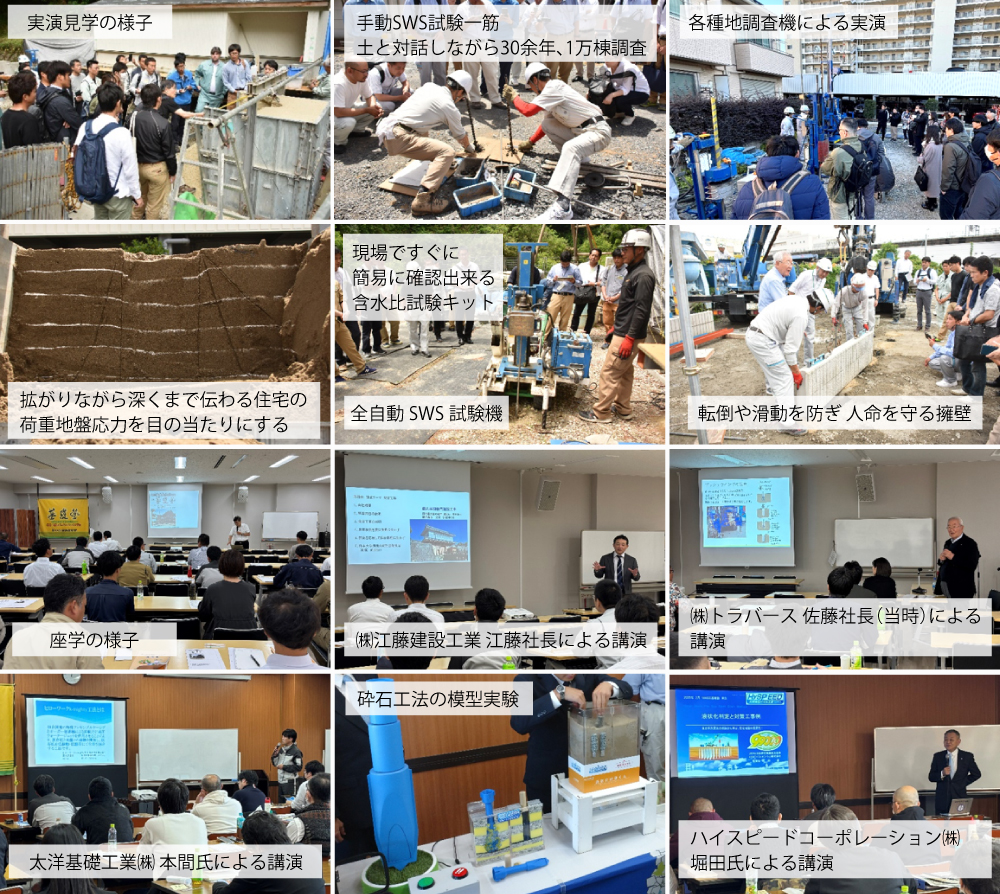 施工実演の有無と施工協力会社 /ゲスト講師/講演テーマ※3実演・大阪(株) WASC基礎地盤研究所、 (株) トラバース 実演・東京:(有) 近藤地質調査所、 (株) トラバース |